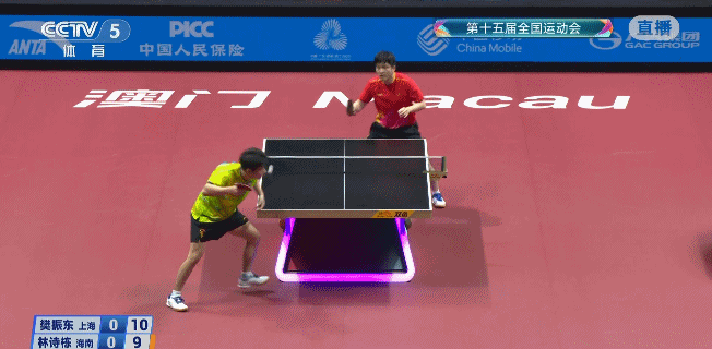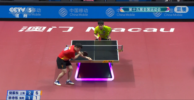 第一局,比赛开始双方就陷入胶着,林诗栋9-4率先拉开比分,樊振东随后连续追分,11-9先胜首局。